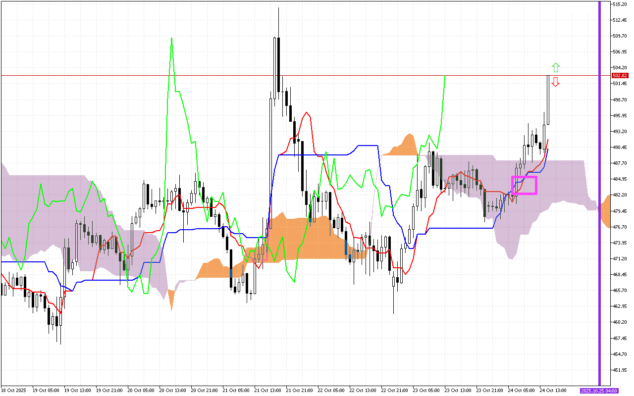 Το σύννεφο Kumo έχει πορτοκαλί χρώμα, υποδεικνύοντας την τάση της αγοράς για μια συνεχή ανοδική κίνηση.