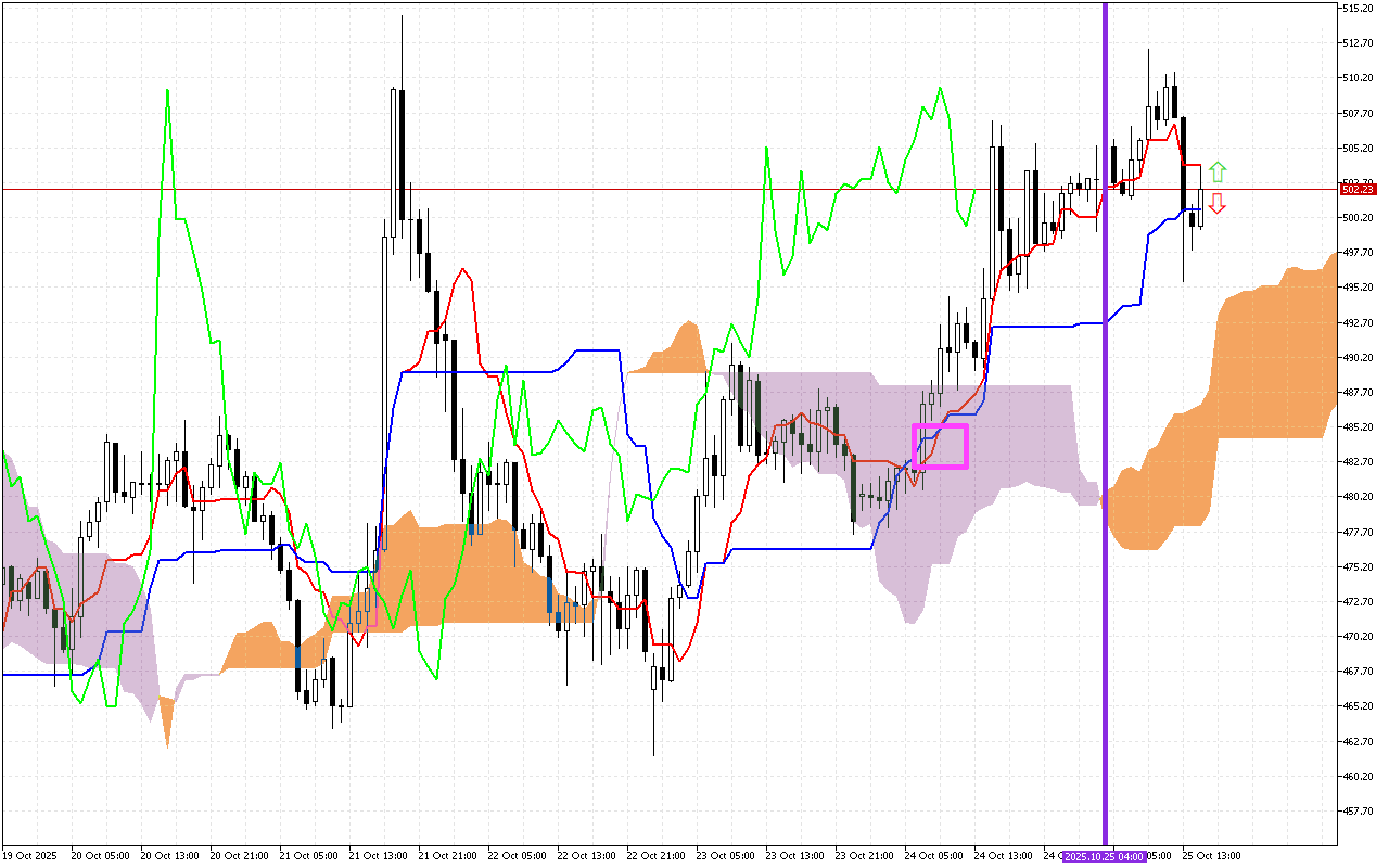 Το πιο σημαντικό σήμα των προηγούμενων συνεδριάσεων συναλλαγών ήταν η τομή των γραμμών Tenkan και Kijun, η οποία θεωρείται ως σήμα αλλαγής της τάσης στην αγορά.