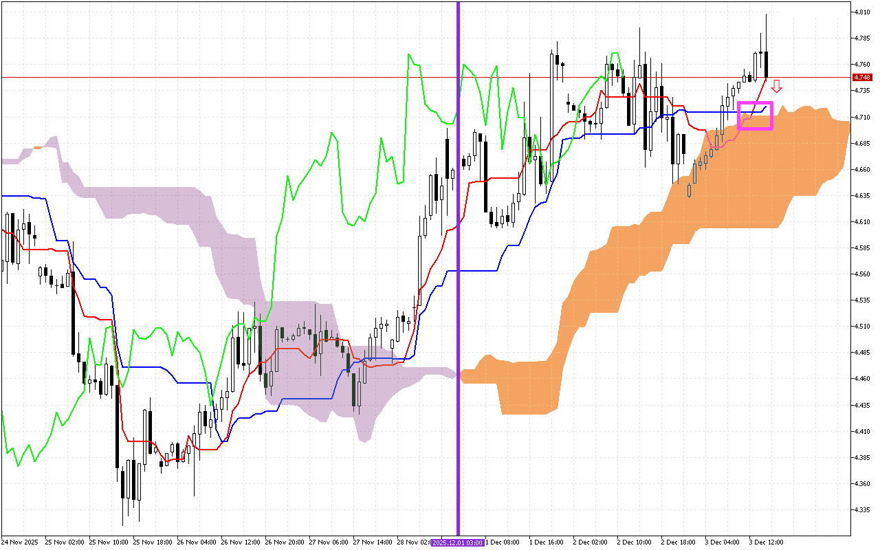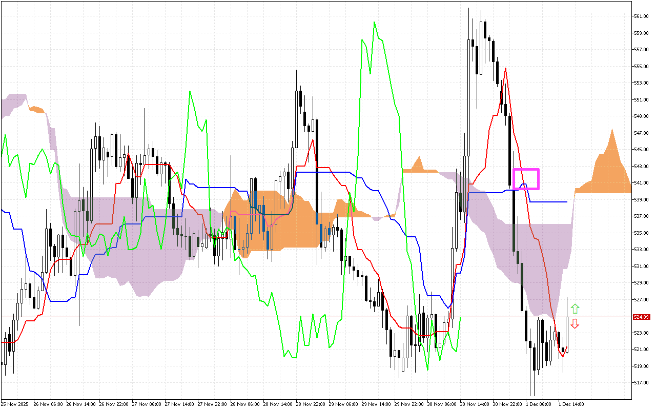 Το πιο σημαντικό σήμα των προηγούμενων συνεδριάσεων συναλλαγών ήταν η τομή των γραμμών Tenkan και Kijun, η οποία θεωρείται ως σήμα αλλαγής της τάσης στην αγορά.