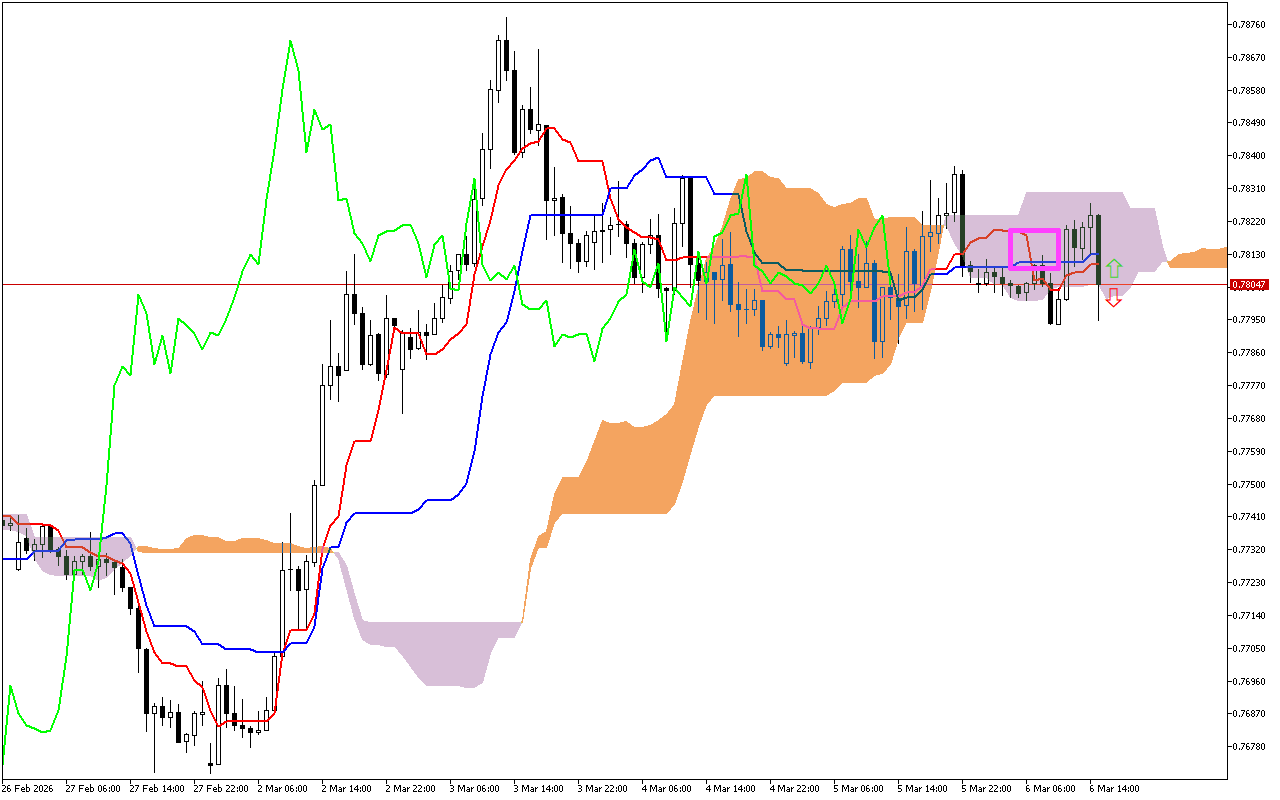 Η ανάλυση της κατάστασης της αγοράς, που αναπτύχθηκε σε προηγούμενες συνεδριάσεις συναλλαγών, δείχνει τη διασταύρωση των γραμμών Tenkan και Kijun. Συνήθως, αυτό το σήμα υποδεικνύει μια επερχόμενη αύξηση, αλλά στη συνέχεια η τιμή έπεσε κάτω από τη γραμμή Tenkan.