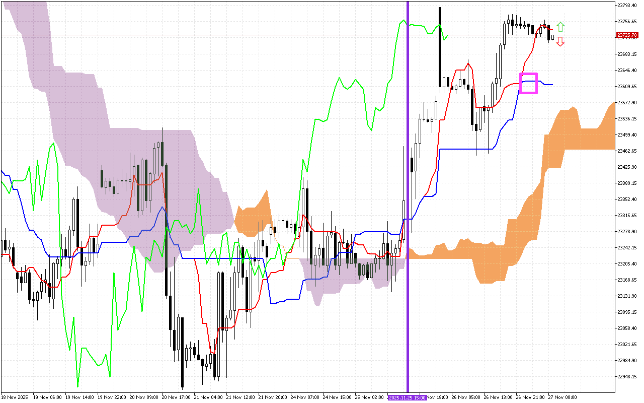 Ας δούμε προσεκτικά τις τρέχουσες τιμές των κύριων στοιχείων του δείκτη Ichimoku για να αξιολογήσουμε την τρέχουσα κατάσταση της αγοράς: