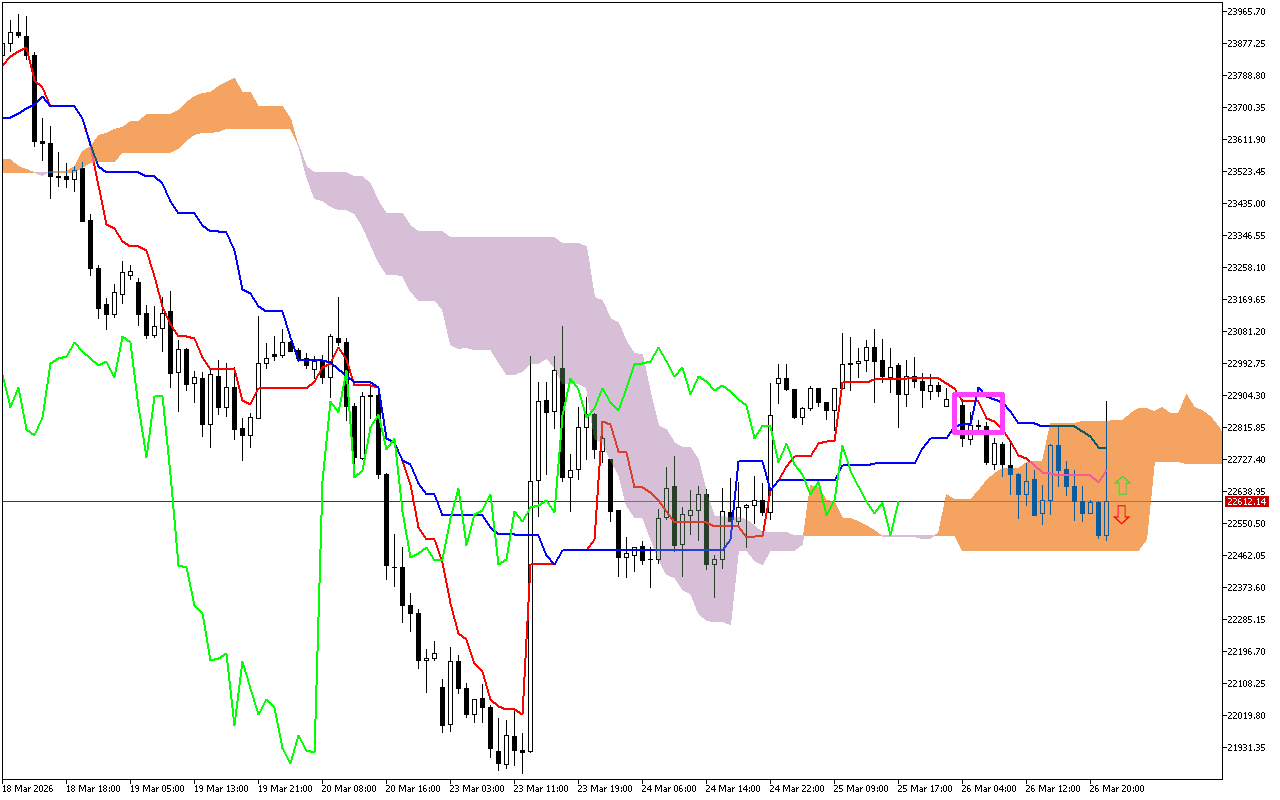 የChikou መስመር አሁን ካለው ዋጋ በታች ነው።