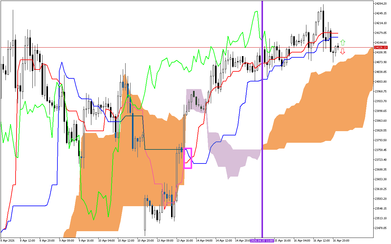 ተለዋዋጭ የመቋቋም ደረጃ በTenkan መስመር ላይ፣ በ24176.81 ምልክት ዙሪያ ነው።