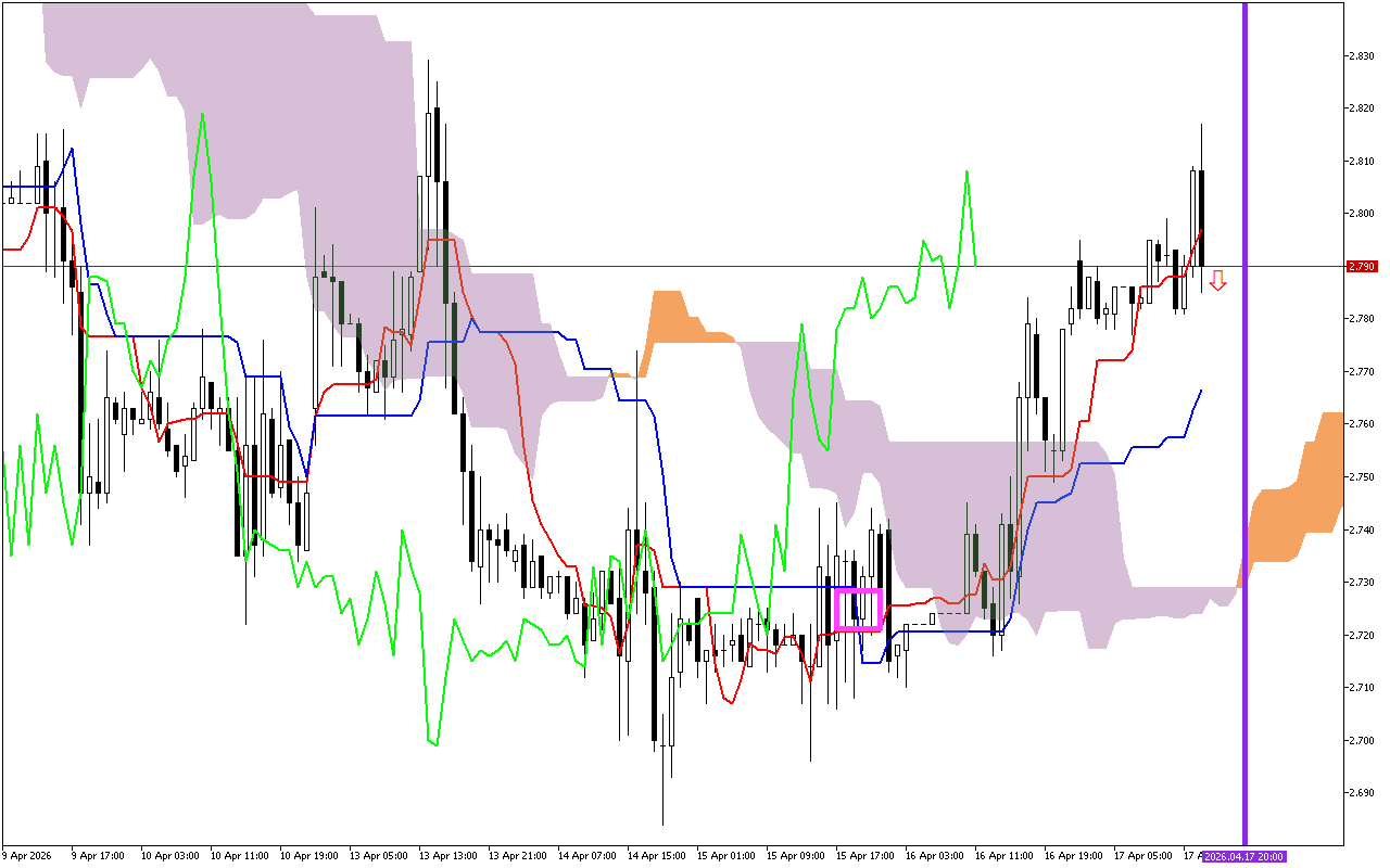 ተለዋዋጭ የድጋፍ ደረጃዎች በ 2.793 አቅራቢያ ባለው Tenkan መስመር፣ በKijun መስመር 2.763፣ በSenkouA መስመር በ2.724 አቅራቢያ እና በSenkouB መስመር በ2.729 አካባቢ ይታያሉ።