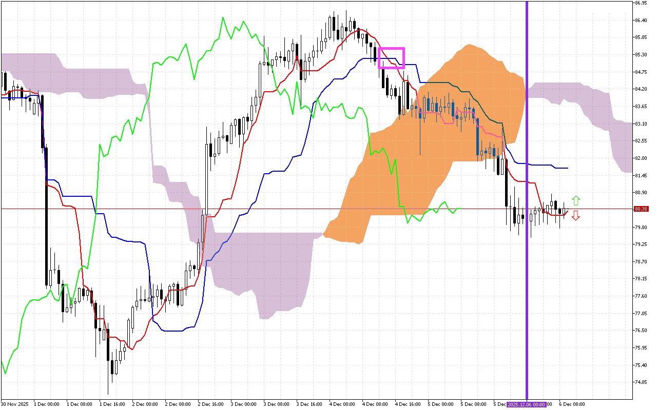 የChikou መስመር አሁን ካለው ዋጋ በታች ነው።