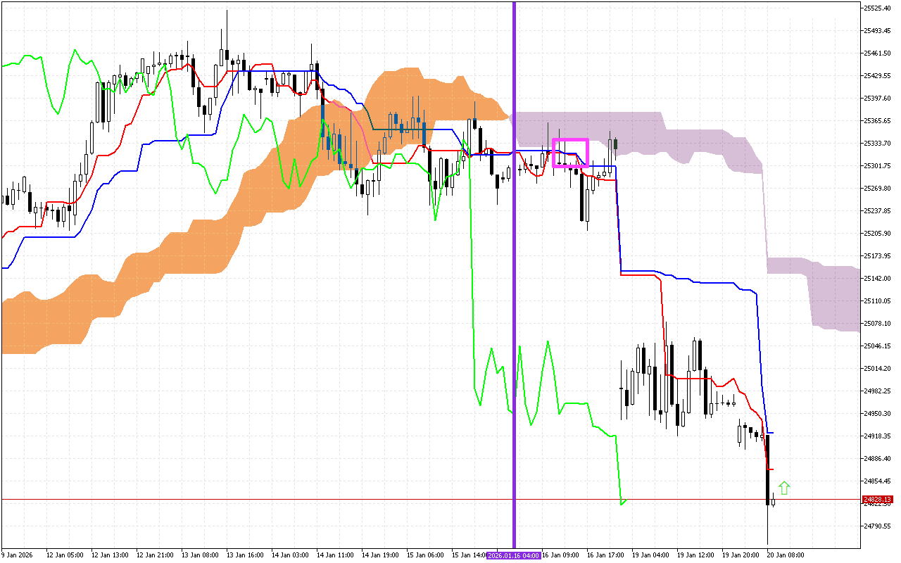 The most significant signal of the previous trading sessions was the intersection of the Tenkan and Kijun lines, which is considered as a signal of a change in trend in the market.