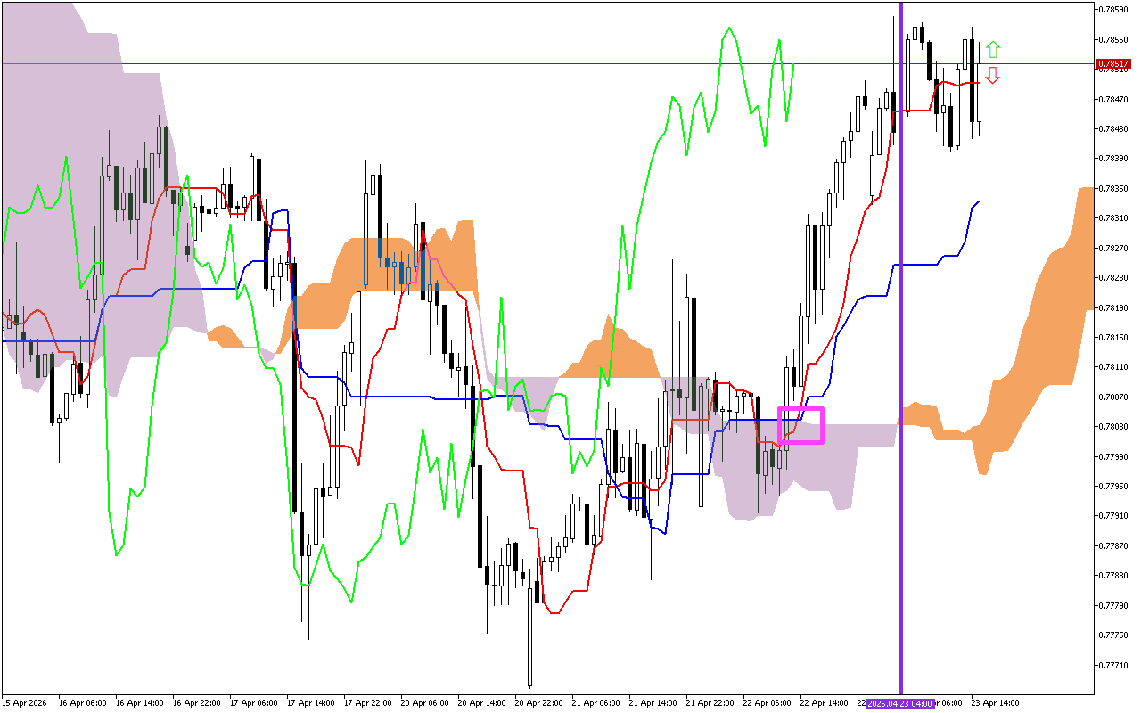 Dynamic support levels are located on the Kijun line, near the 0.78324, the SenkouA line, at the 0.78029, and the SenkouB line, near the 0.78012.