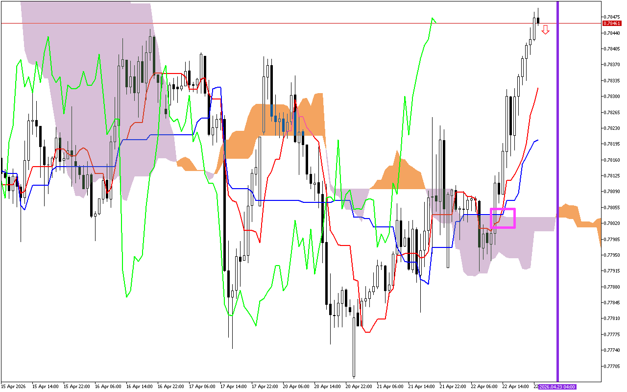 Dynamic support levels are seen at the Tenkan line near 0.78285, the Kijun line around 0.78200, the SenkouA line near 0.78003, and the SenkouB line around 0.78033.