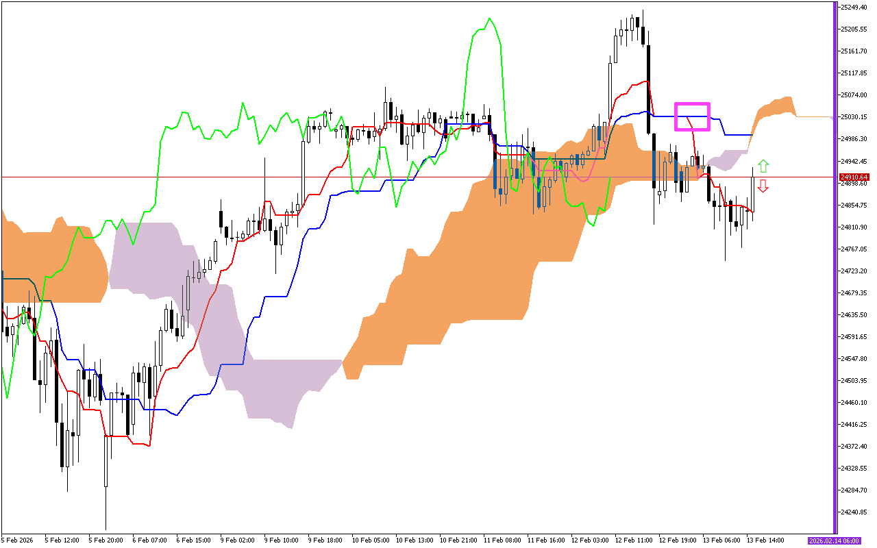 Layin Chikou, wanda ke nuna farashin rufewa tare da jinkirin lokuta 26, ya fi farashin yanzu.