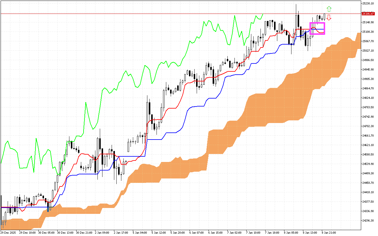 Matsayin juriya mai ƙarfi yana kan layin Kijun, a kusa da alamar 24857.52.