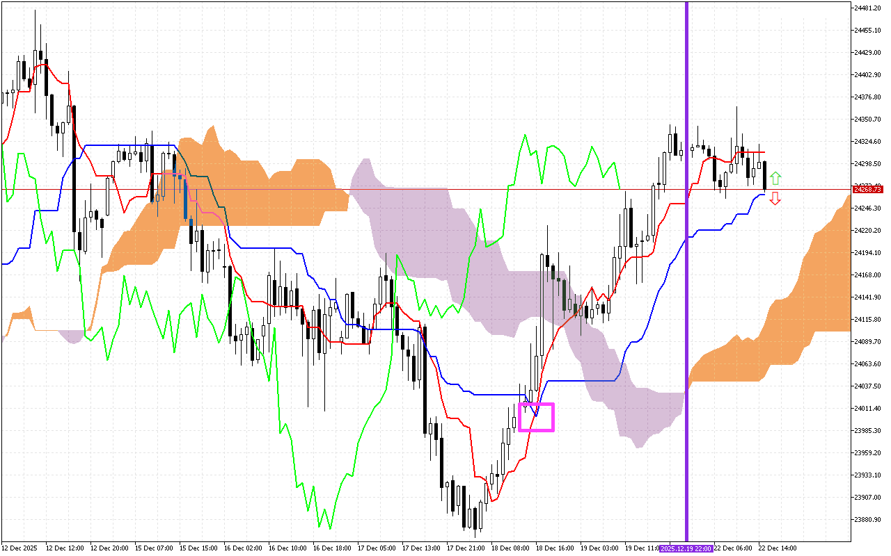 Matakan tallafi masu ƙarfi suna kan layin Kijun, kusa da 24683.22, layin SenkouA, a 24537.32, da SenkouB layi, kusa da 24715.68.