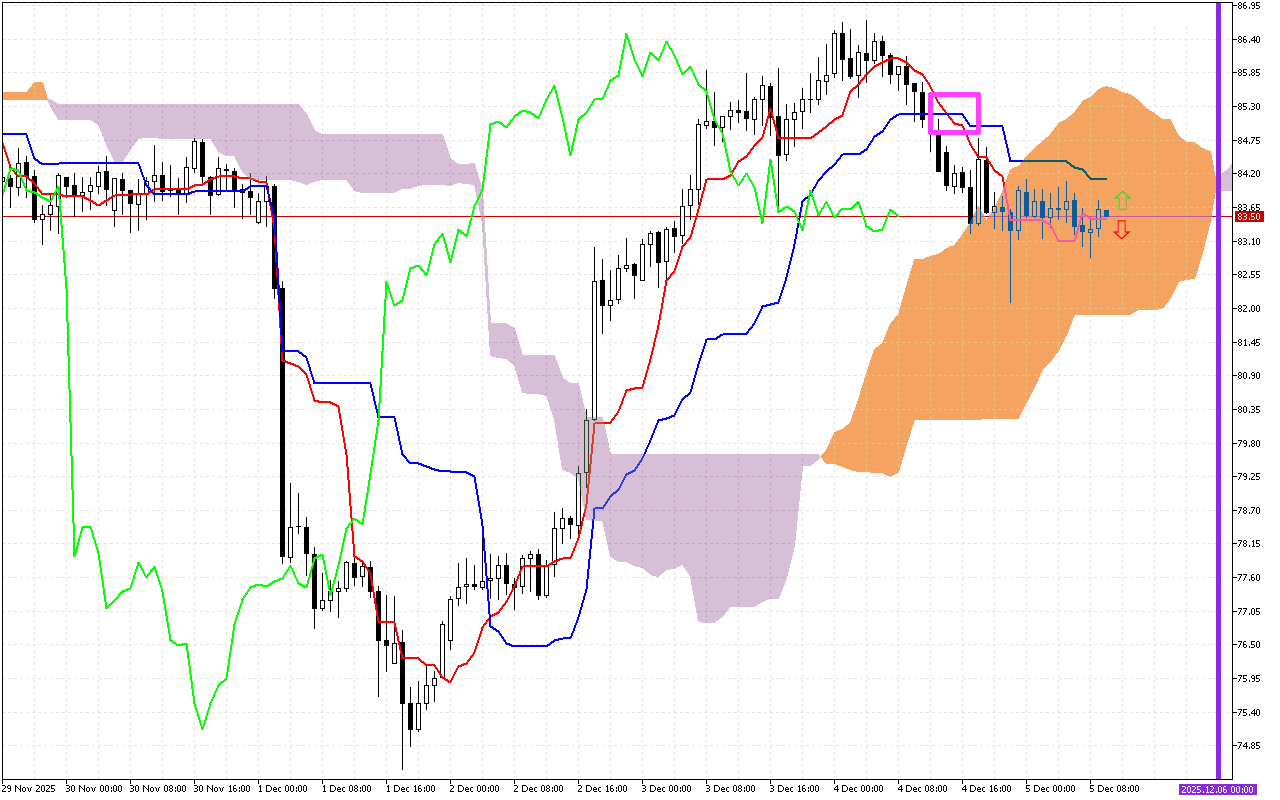 Matakan juriya mai ƙarfi suna kan layin Tenkan, a cikin yankin 81.25, layin Kijun, kusa da 81.82, da SenkouA, a matakin 83.92, da layin SenkouB, a kusa da 84.15.