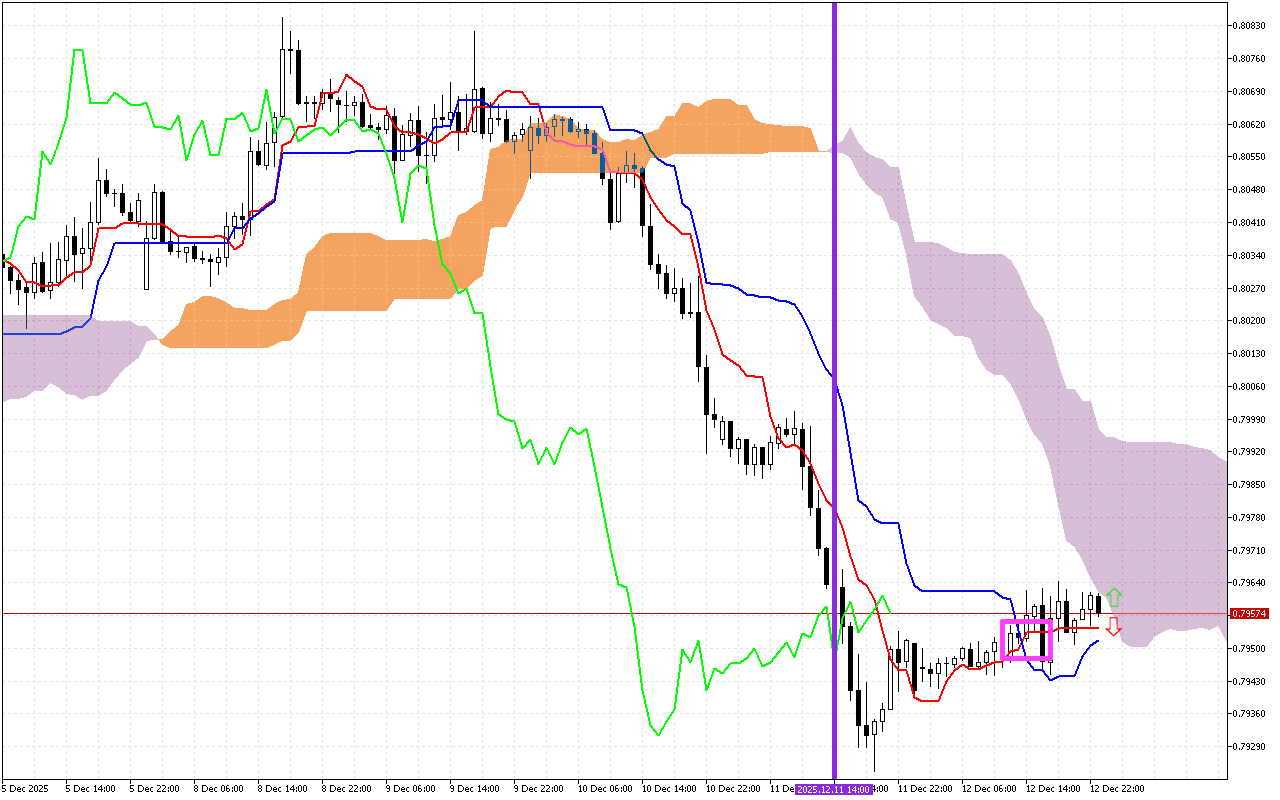 Matakan juriya mai ƙarfi suna kan layin Kijun, kusa da 0.79191, layin SenkouA, a alamar 0.79411, da SenkouB layi, kusa da alamar 0.79278.
