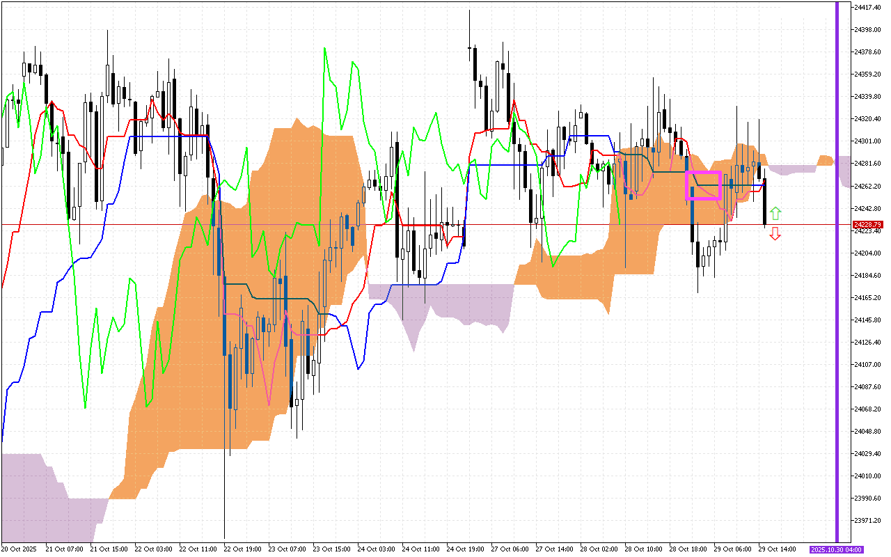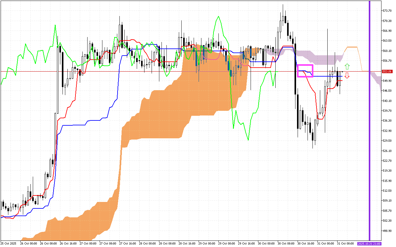 Gatiin kun duumessa Kumo keessa jira, kunis marsaa mirkanaa’uu dhabuu gabaa agarsiisa. Sararoonni SenkouA fi SenkouB akka deeggarsa fi diddaatti hojjetu.
