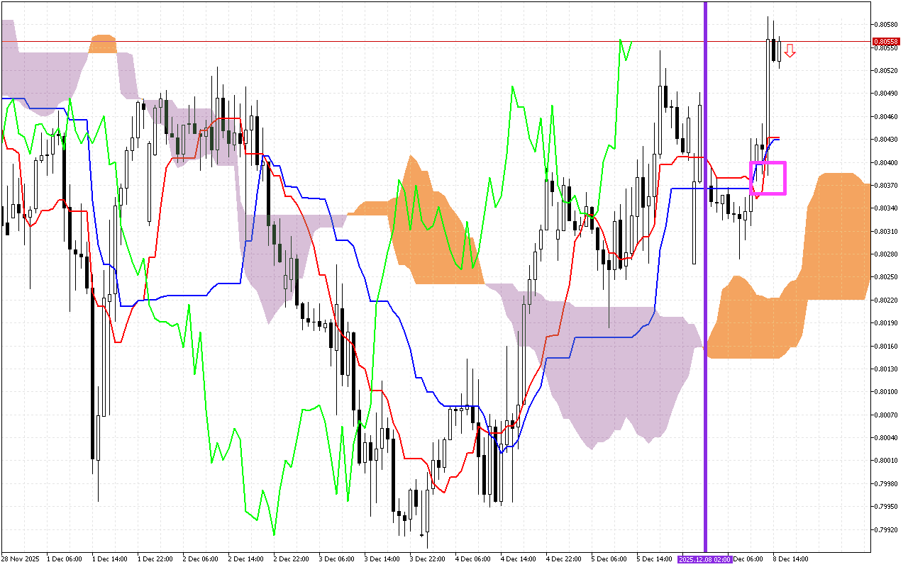 USDCHF H1: Raaga Ichimoku Walgahii Ameerikaa gaafa 8.12.2025