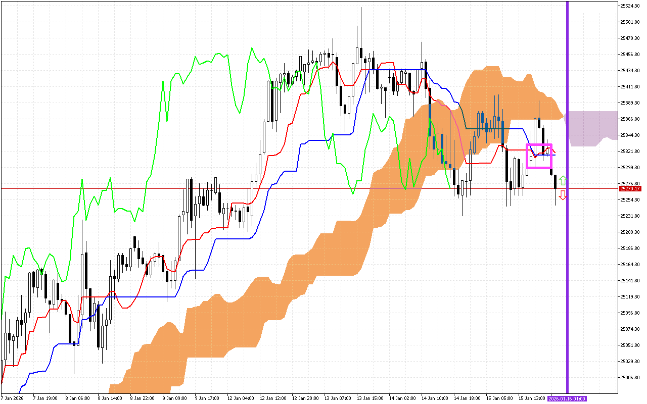 Sadarkaaleen mormii daayinamikii sarara Tenkan irratti, naannoo 0.79120, sarara Kijun, naannoo 0.79302, sarara SenkouA, sadarkaa 0.79144, fi sarara SenkouB, naannoo 0.79308 jedhamuun beekama.