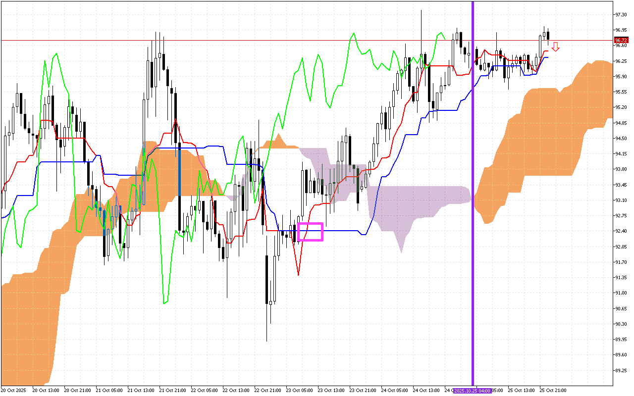 Динамический уровень поддержки находится на линии Tenkan, в районе отметки 95.94.