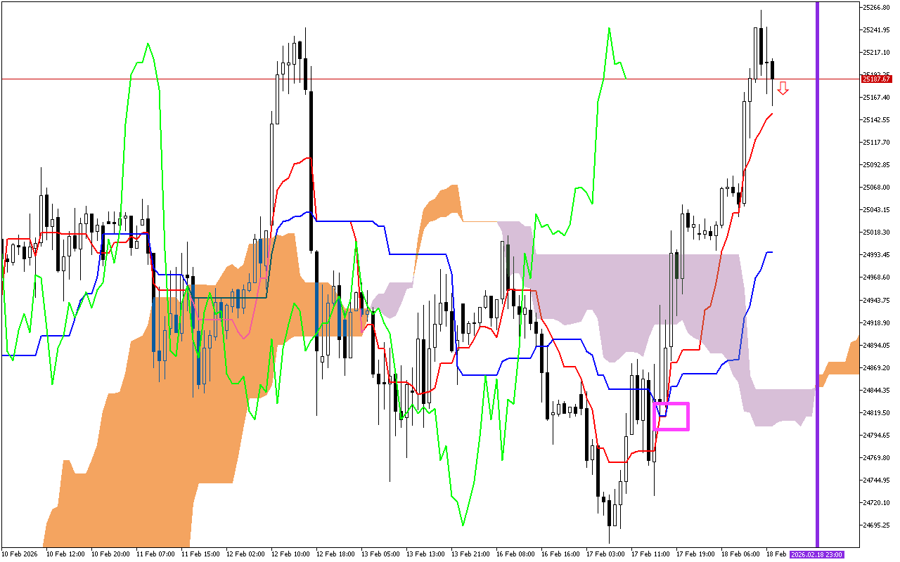 Наиболее значимым сигналом предшествующих торговых сессий стало пересечение линий Tenkan и Kijun, что рассматривается как сигнал смены тенденции на рынке.