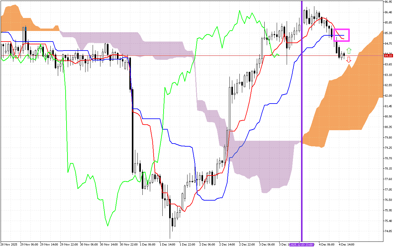 Bayi Kumo awọsanma ti ni awọ lilac, eyiti o tọkasi iyipada ti o ṣeeṣe ni awọn agbara idiyele ni itọsọna odi.