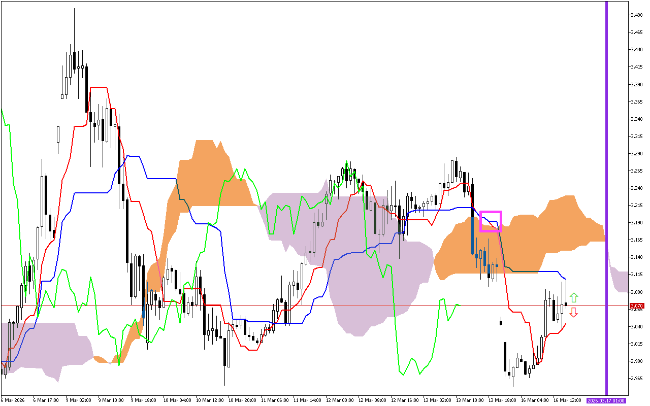 Laini Chikou wa ni isalẹ idiyele lọwọlọwọ.