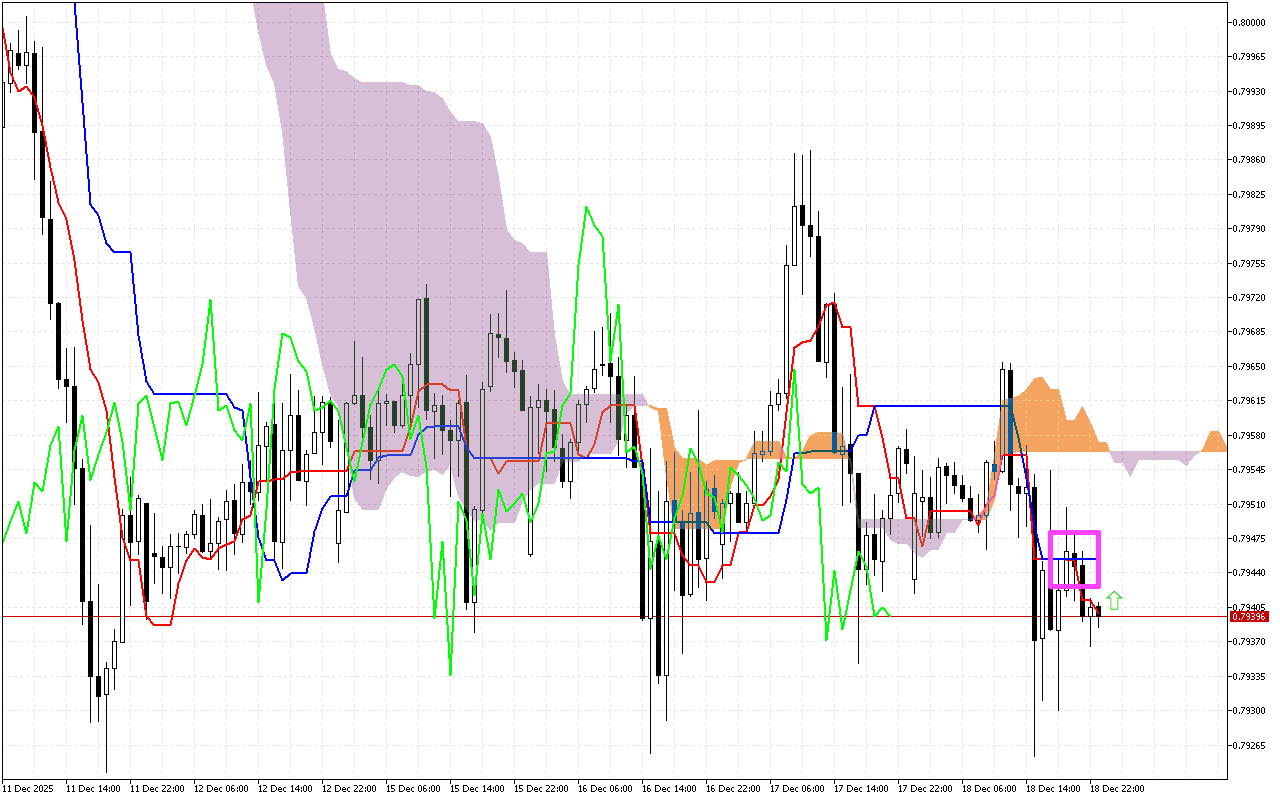 Enye yezimpawu eziyinhloko zezikhathi zokuhweba zangaphambilini kwaba ukuphambana kwemigqa ye-Tenkan kanye ne-Kijun. Le ndawo imakwe ngesikwele esiphinki egrafu. Ukukhuphuka komugqa we-Tenkan ngaphezu komugqa we-Kijun kuyisignali evumayo, engabonisa ushintsho olungenzeka kuthrendi ukuya phezulu.