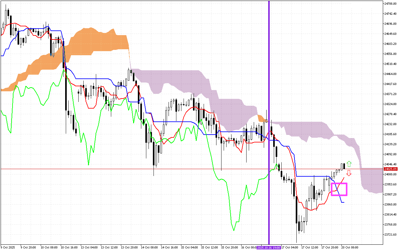 Amazinga okumelana namandla atholakala kulayini we-Kijun, eduze nomugqa we-23871.95, ulayini we-SenkouA, kumaki we-24166.22, kanye nolayini we-SenkouB, eduze nomugqa we-24229.90