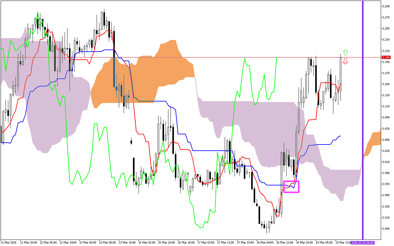 Isetshenziswa ngabatshalizimali ukuhlonza ushintsho kuthrendi, ulayini oluhlaza Chikou ungaphezu kwentengo eseshadini.