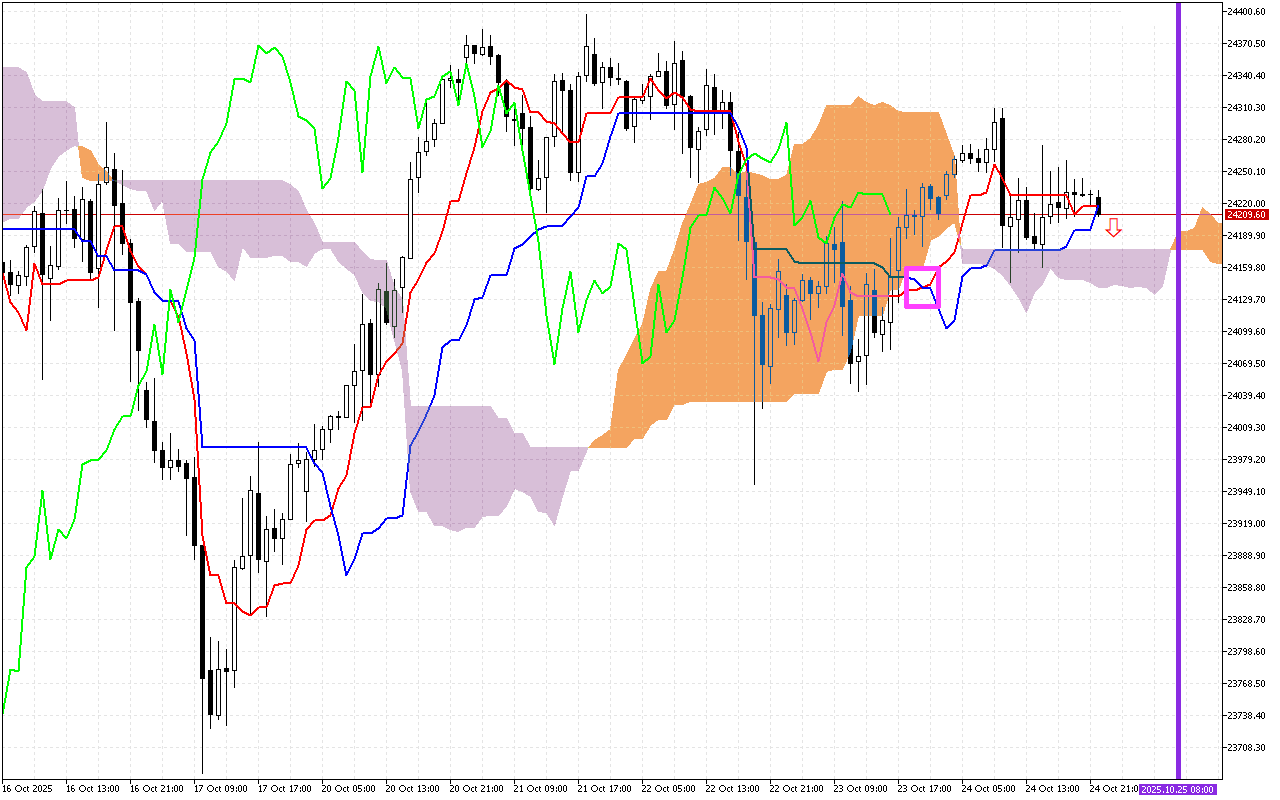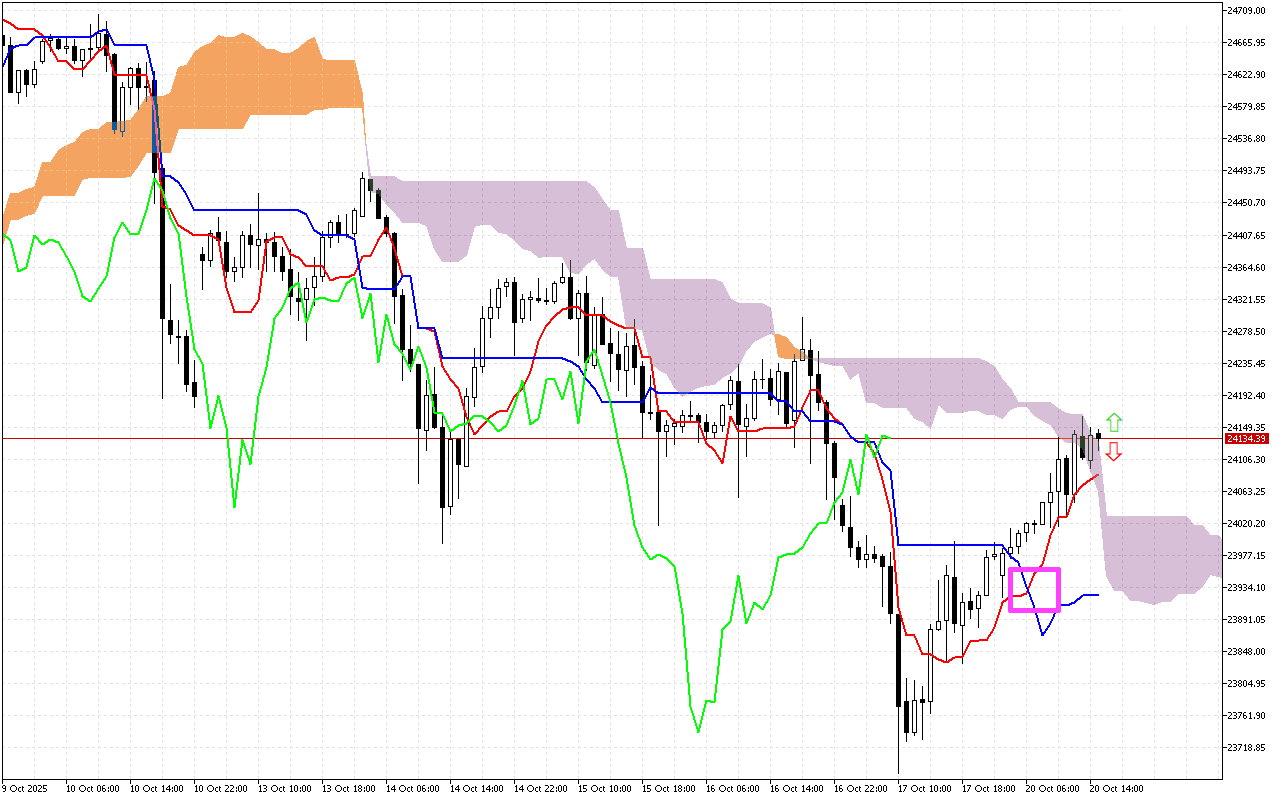Intengo yemakethe ihlala ingaphezulu kwe-Tenkan kanye nemigqa ye-Kijun, okubonisa isimo sengqondo esihle semakethe.